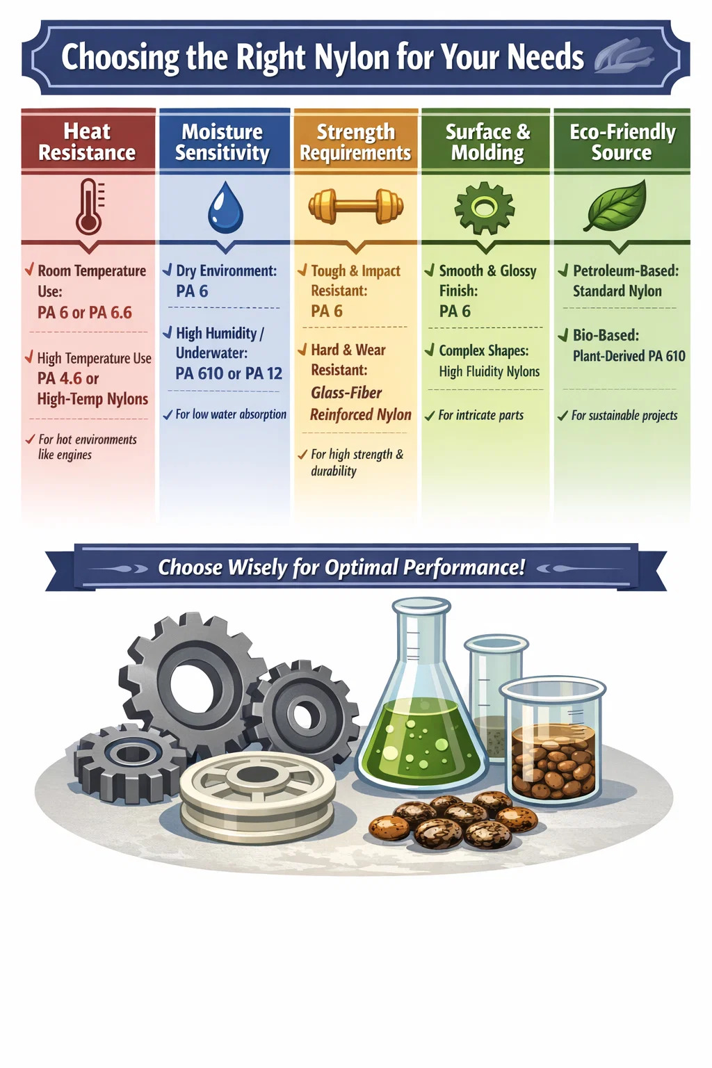 Adversus varietatem materiae nylon in foro, ius "typi" eligens tam magni momenti est quam eligens magnitudinem et materiam cum vestibus emendis. In polyamide familia multa membra habet, unumquodque cum suis propriis notis. Ad unam aptissimam eligendam, sequentes rationes practicas considerare potes: