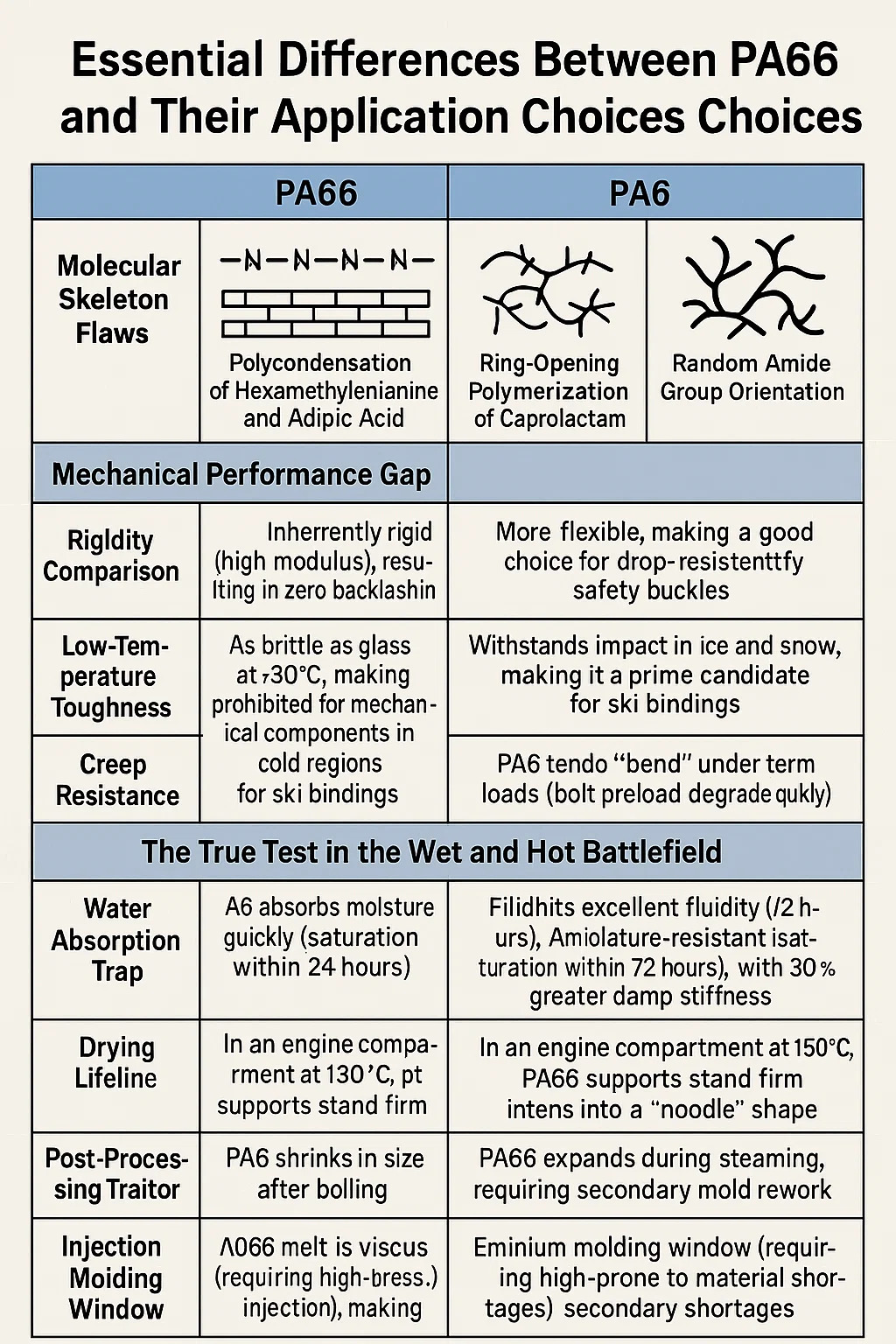 Differentias inter essentiales Pa66 et Pa6 et Their Application Choices