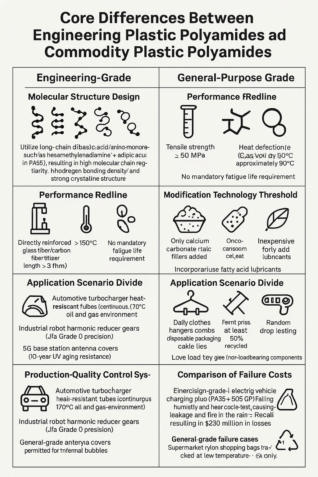 Core differentias inter Engineering Plastic Polyamides Et mercimonia plastic Polyamides